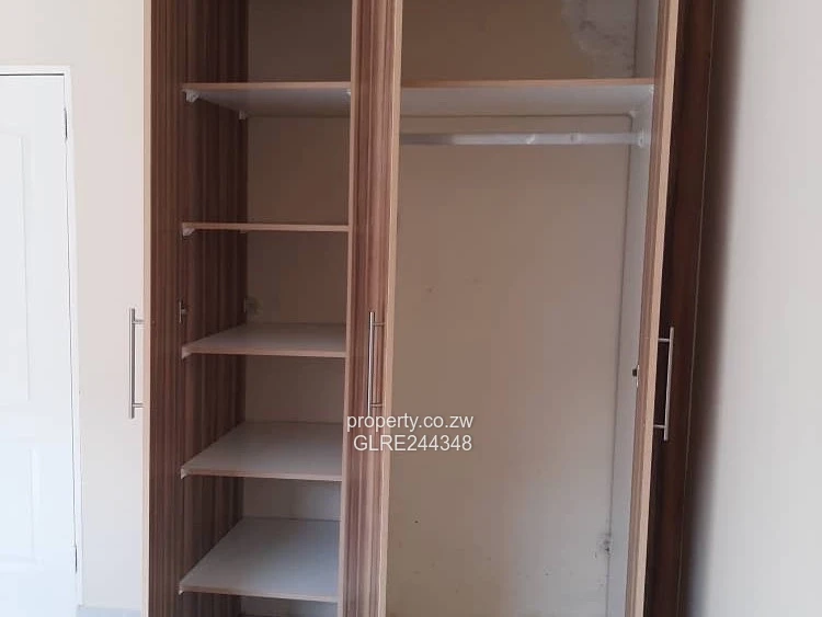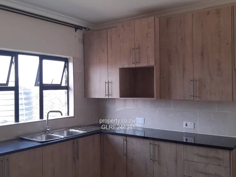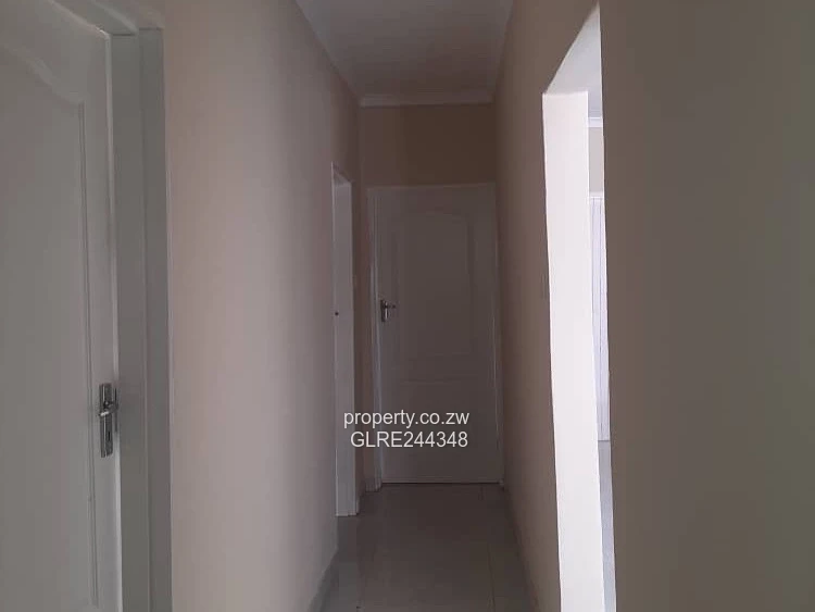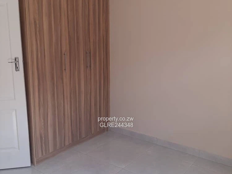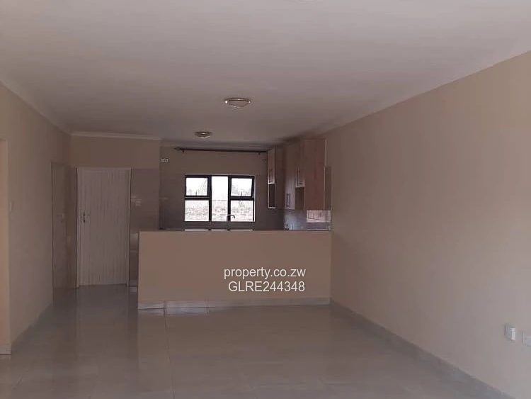 Beautiful three-bedroom, two-bath apartment in Marlborough, Harare West — ideal for families or investors. Set on a 600 m² stand with a 450 m² building area, this modern unit features neutral finishes and glossy tiled floors that brighten every room. As shown in the photos: a light-filled living area with sliding glass doors opening onto a paved communal courtyard/parking area; a practical open-plan kitchen with quality fitted cupboards and breakfast counter; a long internal corridor leading to three bedrooms with built-in wardrobe space; and fully tiled bathrooms with pedestal basin and WC. Reliable borehole water supply adds peace of mind and lowers running costs. Well finished, low-maintenance and secure, this unit offers convenience and contemporary living in a sought-after Marlborough location. Arrange a viewing today — a great buy in Harare West.