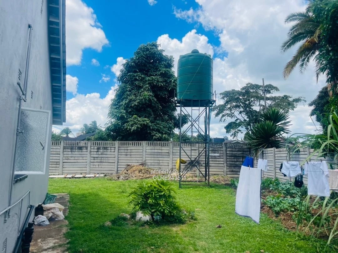 Practical features include a large water tank and municipal water supply, sewer connection, storage room, garage plus a separate outbuilding/garage area and ample paved parking for several vehicles. Security is strong with a fully walled property, access control and barred windows. Additional comforts: tiled floors throughout, internet connection ready, installed roof-mounted solar water heater and neat finishes that create an easy, move-in-ready lifestyle. Quiet street, convenient access to Harare West amenities — contact us to view.